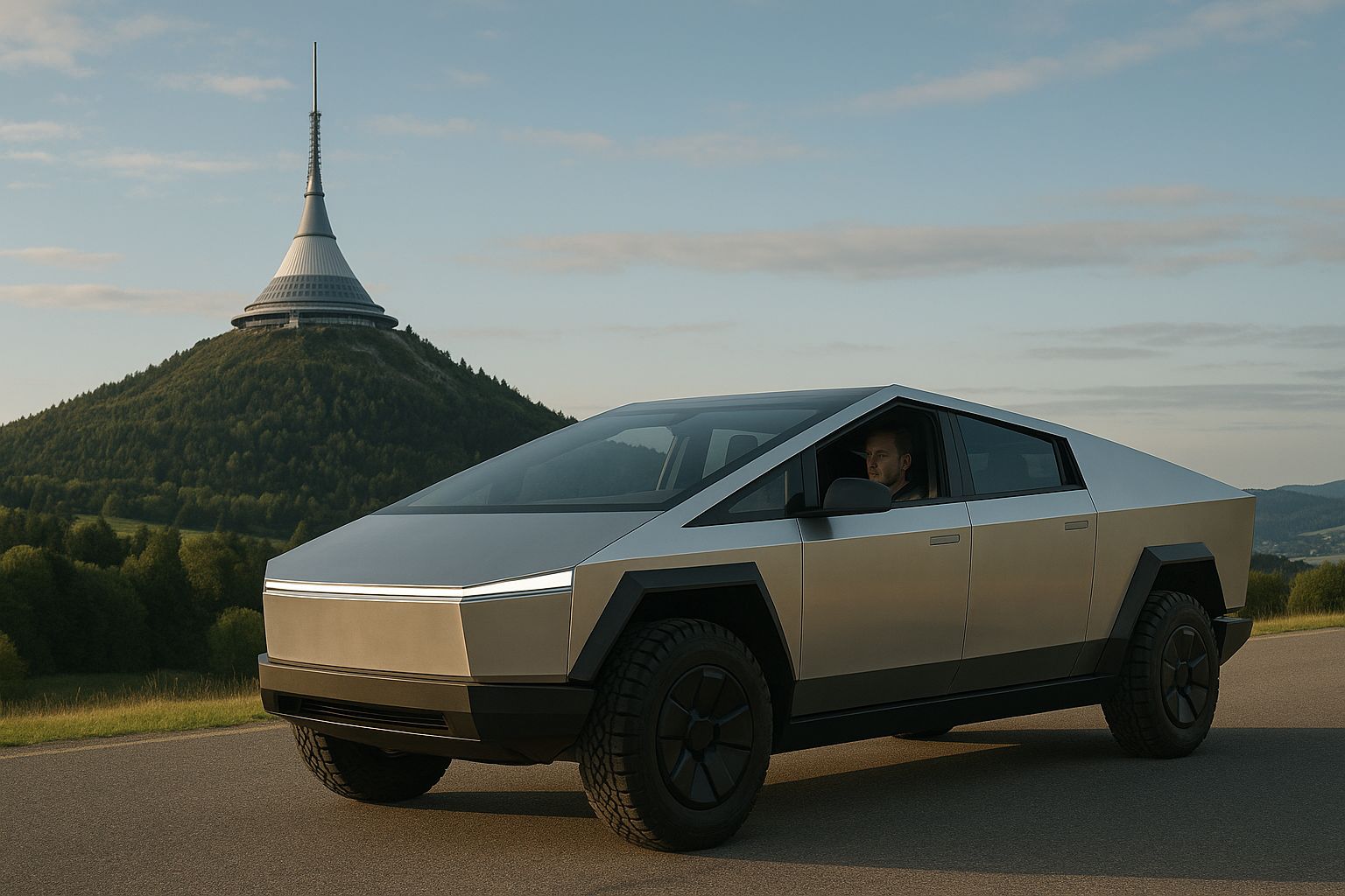 Vyzkoušej si Cybertruck za volantem v libereckém kraji po klikatých silnicích okolo Ještědu nebo okolí.